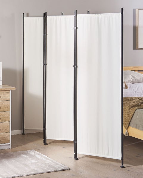 Tragbare, faltbare Stellwand mit Stoffbespannung und robustem Stahlgestell . Dieser flexible 5-teilige Wandschirm zaubert einen Platz für Ihr Home Office in ihren Salon oder grenzt das Wohnzimmer vom Schlafbereich ab. Einfach und schnell lassen sich verschiedene Räume zum Speisen, für gesellige Treffen oder ein vorübergehendes Schlafzimmer für Übernachtungsgäste schaffen. Die spanische Wand besitzt ein standsicheres Metallgestell, das zusätzlich mit Bodenschutzkappen versehen ist. Der hochwertige Stoffbezug ist nicht nur besonders robust, er ist auch UV-Beständig. Zudem kann man die Trennwand im geschützten Outdoor-Bereich nutzen sowie platzsparend zusammenklappen und verstauen. Details: Typ Paravent. Farbe: Weiß. Material: Stoff. Material: Stoff. Zusätzliches Material: Stahl. Finish: Pulverbeschichtet. Abmessungen: Tiefe: 2 cm. Breite: 267 cm. Höhe: 170 cm. Gewicht: 7 kg. .Sie kaufen: 1x Paravent. Produktvorteile: Zusammenklapbar – bequem im Transport, Klassisches Design, Passt wunderbar zu jedem Einrichtungsstil, UV-Beständigkeit Klasse 4 (ISO 105-B05), Schutzkappen zum Schutz des Bodens. Montage: Nicht montiert.20 - 40 Min. Zusatzinformationen: Der Raumteiler kann im Freien verwendet werden, sofern er vor Wettereinflüssen – wie Wind oder Regen – geschützt ist. Pflegeanleitung: Stoff: 1.Flecken können mit einem Polsterreiniger, einem angefeuchteten Schwamm oder milden Reinigungsmitteln entfernt werden. 2.Oberflächen nur mit geeignetem Aufsatz vorsichtig absaugen. Stahl: 1.Bitte ausschließlich handelsübliche, milde Reinigungsmittel und weiche Tücher verwenden, wobei feuchte Stellen sofort trocken gerieben werden sollten. 2.Vermeiden Sie scheuernde Reiniger, da diese die Oberfläche beschädigen können. 3.Bei Chrom und Kupfer regelmäßig mit speziellen Pflegemitteln polieren.