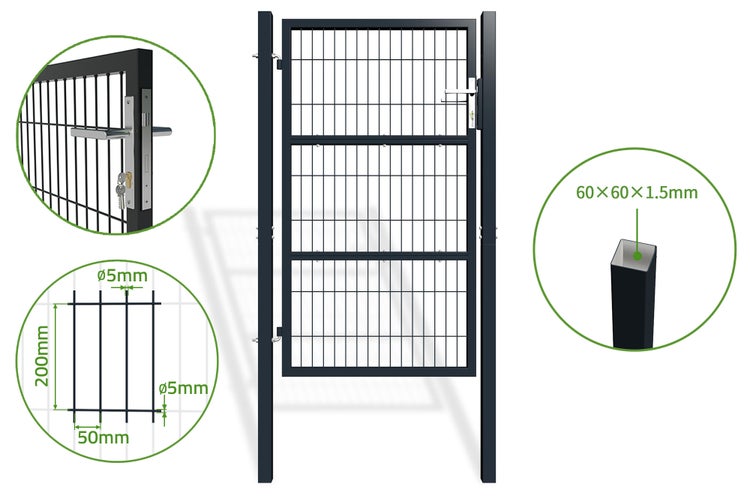 RAZO Zauntor Metall 1m Gartentür Breite 106 x Höhe 166 cm Anthrazitgrau, inkl. Griff, Schloss und Schlüssel I Gartenpforte Einfahrtstor Hoftür