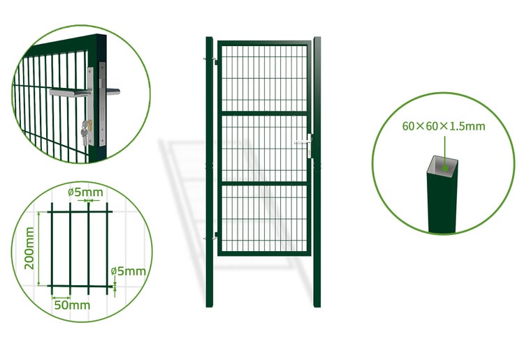 Bekannt für ihre Leichtigkeit, ist dieses Drahtgittertor dennoch robust und langlebig.