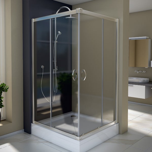 Rechteckige Duschkabine, 90x70 cm Eckdusche Schiebetür 6 mm Sicherheitsglas