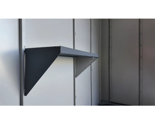 Mit dem optionalen Metallregal in Anthrazit nutzen Sie den Stauraum Ihres Gerätehauses noch effizienter.