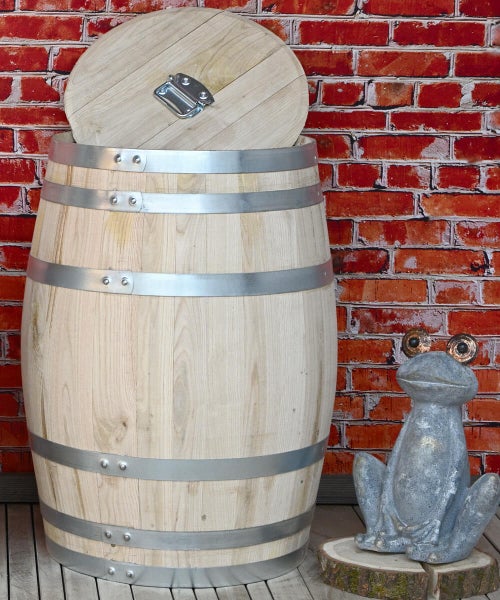150 l Regentonne aus Kastanienholz, mit Deckel zum Auflegen