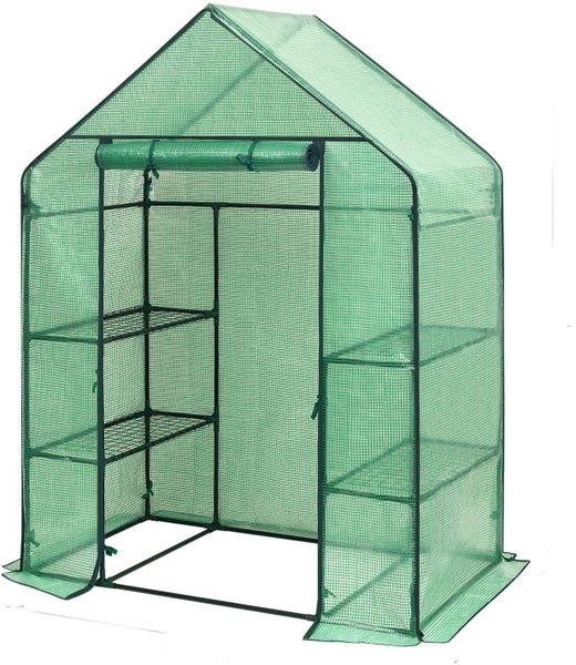 Das Kinzo Gewächshaus ist ideal für den Außenbereich, großes begehbares Pflanzengewächshaus mit 3 Etagen und 6 Regalen