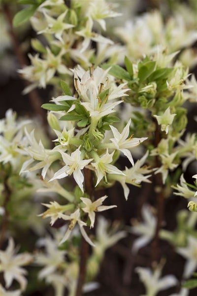 Rhododendron atlanticum, Azalee, weiß-rosa Blüten, 40–50 cm