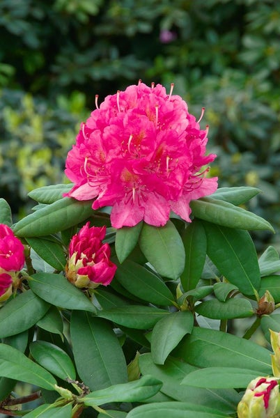 Rhododendron Hybr. 'Catharine van Tol', immergrün, rosa Blüten, 40–50 cm