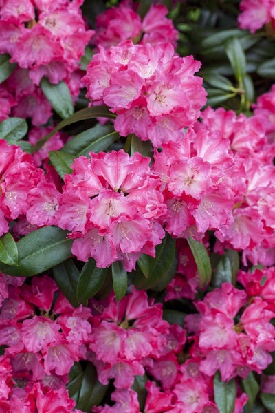 Rhododendron Hybr. 'Germania', Rhododendron, rosa Blüten, 30–40 cm