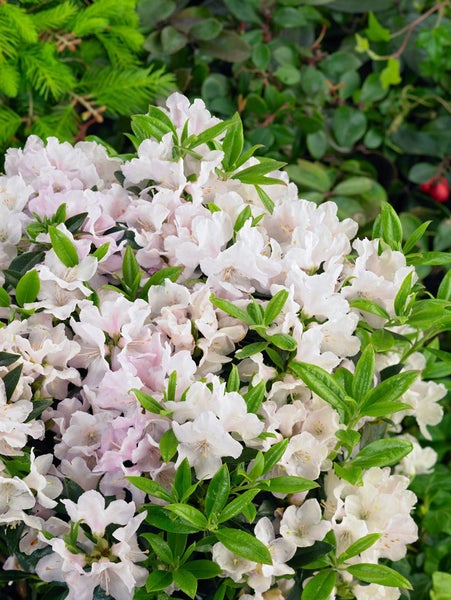 Dieser Zierstrauch bevorzugt einen sonnigen bis halbschattigen, luftigen Standort mit Morgen- oder Abendsonne, wobei volle Mittagshitze gemieden werden sollte. Ein locker-humoser, saurer Boden mit sehr guter Drainage ist entscheidend; kalkarme, torffreie Rhododendronerde oder Mischungen mit Nadelhumus, Rindenmulch und mineralischen Zuschlägen wie Bims oder Sand sichern konstante, gleichmäßige Feuchte ohne Staunässe. Weiches Wasser und ein maßvolles Düngen im Frühjahr mit speziellem Rhododendrondünger fördern reiche Knospenbildung. Schnitt ist kaum nötig; ein leichtes Ausputzen direkt nach der Blüte erhält die dichte Kissenform. In Gefäßen empfiehlt sich ein breites, flaches Pflanzgefäß mit Abzugslöchern und eine Mulchschicht, die die flach wurzelnde Pflanze kühl hält. Kombinationspartner sind niedrige Heide, Zwergkoniferen, Farnschatten und feine Gräser, die die elegante, bodennahe Silhouette harmonisch betonen.