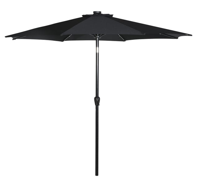 Rices Sonnenschutz Sonnenschirm, mit Kurbel, LED Solar uynd Neigung Ø3m schwarz/schwarz. 300 X 300 X 248 cm