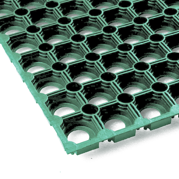 Eine Ringmatte kann sowohl im Innen- als auch im Außenbereich verwendet werden. Der offene Boden sorgt für einen guten Ablauf von Flüssigkeiten und Schmutz. Das ist nicht nur praktisch an Ihrem Eingang, sondern auch sicher an Orten, wo der Boden oft nass ist. Da die Matte aus Naturkautschuk besteht, hat sie auch an kalten und nassen Wintertagen eine gute Anti-Rutsch-Wirkung. Schließlich hat Gummi eine (schall-)dämpfende und isolierende Wirkung. Die Reinigung der Ringmatte erfolgt ganz einfach durch Ausklopfen oder Besprühen mit einem Gartenschlauch / Hochdrucksprüher.