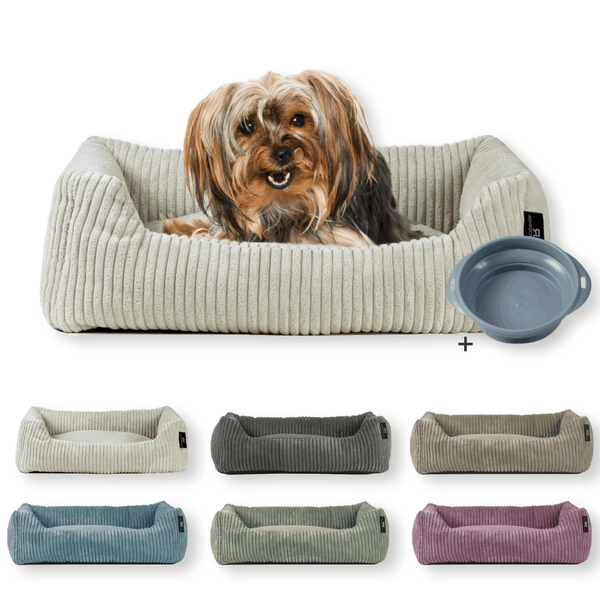 Rohrschneider Tierbett Cordstoff breit Gr. 1 beige + faltbarer Reisenapf