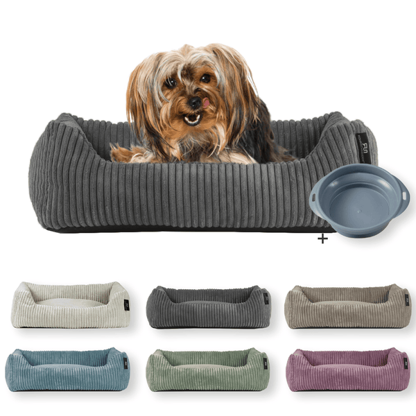Rohrschneider Tierbett Cordstoff breit Gr. 1 grau + faltbarer Reisenapf