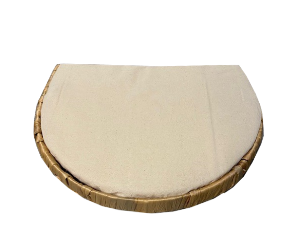 Rohrschneider Wandliege halbrund 1 StückBeschreibungWandliege in halbrunder Form, Metalluntergestell umflochten mit Wasserhyazinthe, zwei Aussparungen an der Rückseite zum Befestigen an der Wand, Kissen inkl. Bezug aus 100% Baumwolle, Bezug durch einen Reißverschluss abnehmbar, Innen Schaumstoff 3cm stark, Handwäsche. Gesamtmaß: B40xT30xH4cm