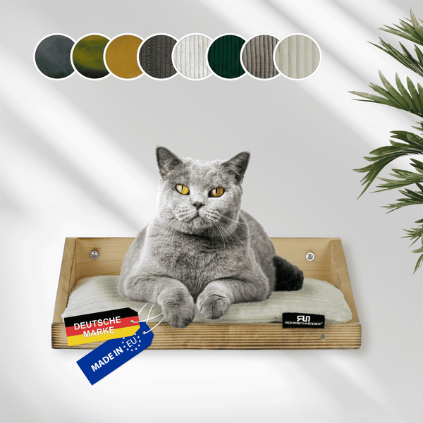 Rohrschneider Wandmulde geflammt+ Kissen mit Füllung Cord breit beigeBeschreibungRobuste Holzliege, geflammt, Montagematerial ist inkl., Liegefläche B40xT25,5cm, Maße: B40xT28xH15cm, Kissen gefüllt mit Vlies 100% PES, Handwäsche, Maße: B37xT24xH2cm