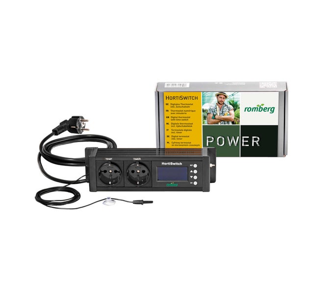 Romberg HortiSwitch 3.0 Thermostat – Digital gesteuertes Allround-Talent mit 3 Steckdosen, Timer & Temperatur-Sensor, Für Heizen und Kühlen