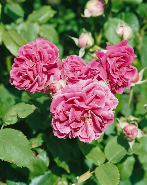 Rosa 'Camelot', die edle Rose mit dem klangvollen Namen, präsentiert sich als vielseitiger Blütenstrauch für anspruchsvolle Gärten. Die Sorte begeistert mit üppig gefüllten, romantischen Blüten in zartem Rosé bis Lachsrosa, die je nach Wetter eine sanfte Nuancierung zeigen und einen angenehmen, eleganten Duft verströmen. Von Juni bis in den Herbst hinein remontiert sie zuverlässig und bringt immer wieder neue Blüten hervor. Der Wuchs ist buschig und aufrecht, kompakt und zugleich kraftvoll, mit dichtem, dunkelgrünem, glänzendem Laub, das die Blüten perfekt in Szene setzt. Als Gartenstrauch macht Rosa 'Camelot' im Staudenbeet ebenso Eindruck wie im Vorgarten, eignet sich für Gruppenpflanzungen, als edler Solitär oder als niedrige, blühfreudige Heckenpflanze. In einem größeren Kübel wird sie zur attraktiven Kübelpflanze für Terrasse und Balkon und überzeugt zudem als langlebige Schnittrose in der Vase. Bevorzugt wird ein sonniger bis halbschattiger Standort mit nährstoffreichem, humosem und gut durchlässigem Boden; gleichmäßige Feuchte fördert die Blühleistung, während Staunässe zu vermeiden ist. Ein luftiger Pflanzabstand unterstützt die Blattgesundheit. Für eine zuverlässige Blütenfülle empfiehlt sich ein Rückschnitt im zeitigen Frühjahr auf kräftige Triebe, das regelmäßige Ausputzen Verblühter sowie eine ausgewogene Düngung im Frühling und nach der ersten Hauptblüte. In rauen Lagen schützt eine leichte Abdeckung der Veredelungsstelle im Winter. So entfaltet Rosa 'Camelot' ihre ganze Pracht als Blütenstrauch von klassischer Schönheit.