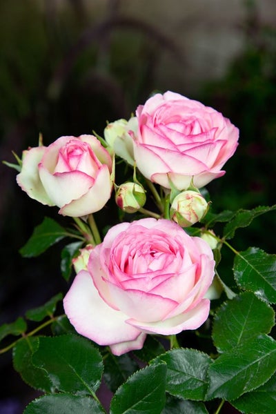 Rosa ‘Eden Rose’, auf Deutsch häufig als Kletterrose ‘Eden Rose’ oder ‘Pierre de Ronsard’ bezeichnet, verzaubert mit nostalgischen, dicht gefüllten Blüten in zartem Cremeweiß mit rosafarbenem Zentrum. Die großen, schalenförmigen Blüten erscheinen reich von Juni bis in den September und erinnern an historische Rosen, während das dunkelgrüne, glänzende Laub einen attraktiven Kontrast bildet. Der Wuchs ist kräftig, kletternd bis bogig überhängend und eignet sich ideal für Rankgerüste, Pergolen, Rosenbögen und Hauswände; ebenso lässt sich diese Sorte in milderen Lagen als üppiger Gartenstrauch oder Solitär führen, wo sie in Gruppenpflanzung stimmige, romantische Akzente setzt. Als Kübelpflanze auf Terrasse und Balkon gedeiht sie in großen Gefäßen mit stabilem Spalier besonders gut, sofern eine gleichmäßige Wasserversorgung gewährleistet ist. Ein sonniger bis halbschattiger Standort fördert die Blühfreude, der Boden sollte humos, nährstoffreich und gut durchlässig sein, damit die Wurzeln weder austrocknen noch vernässen. Ein jährlicher Rückschnitt nach der Hauptblüte, das Ausputzen verwelkter Blüten und eine maßvolle Düngung im Frühjahr unterstützen die remontierende Blühleistung und halten die Pflanze kompakt. Als eleganter Blütenstrauch bringt ‘Eden Rose’ romantisches Flair in den Vorgarten, rahmt Sitzplätze und Wege und harmoniert mit Stauden wie Lavendel, Katzenminze oder Salbei, die ihre pastellfarbenen Blüten perfekt unterstreichen. Ob als Kletterkünstlerin oder repräsentativer Gartenstrauch, diese Sorte verbindet klassische Rosenschönheit mit vitalem Wuchs zu einem eindrucksvollen Blickfang im Ziergarten.