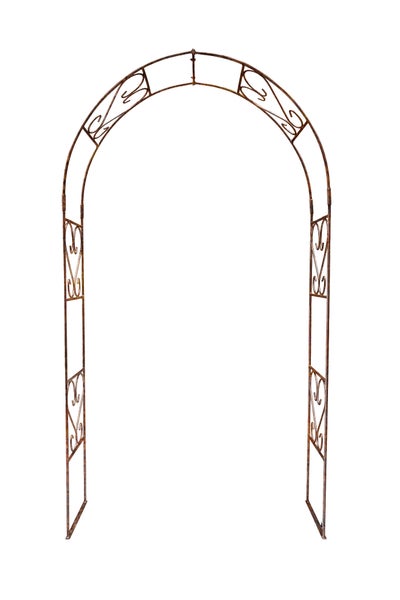 Der Rosenbogen CLARA aus massivem Eisenmetall verleiht Vorgärten ein klassisches Aussehen. Wir bieten den Rosenbogen in der Rost-Optik und in der verzinkten oder schwarzen Version an. Dieser schöne und klassische Rosenbogen aus hochwertigem Metallbogen ist die perfekte Rankhilfe für alle Kletterpflanzen, wie Rosen und andere kletternde Blumen. Die Durchgangshöhe des Rosenbogens ist für jeden ausreichend und wurde in stilechter Handarbeit gefertigt. Die schwungvollen Verzierungen und die stilechte Formgebung gewährleisten viele Gestaltungsmöglichkeiten. Freistehend platziert bietet der Rosenbogen sowohl Zierpflanzen als auch Nutzpflanzen wie Weintrauben einen stabilen Platz. Er dient auch ohne Bepflanzung als sehr dekoratives Gartenelement und lässt sich wunderbar als Sichtschutz und Statue einsetzen.