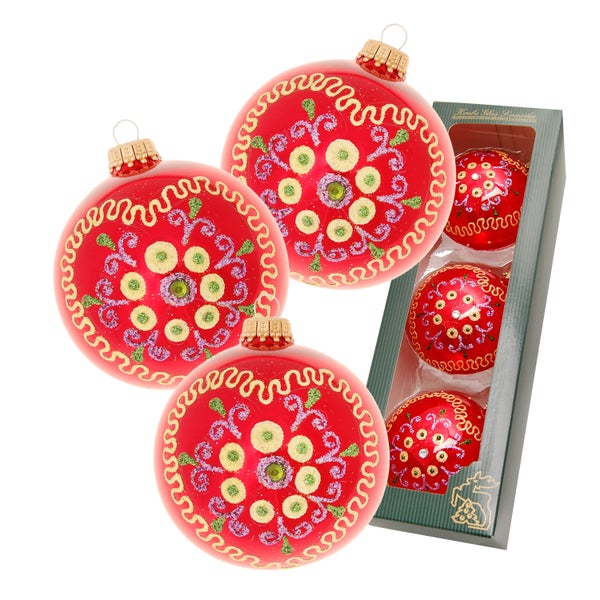 Rot glanz 8cm Glaskugelsortiment, mundgeblasen, handbemalt , 3 Stck., Weihnachtsbaumkugeln, Christbaumschmuck, Weihnachtsbaumanhänger