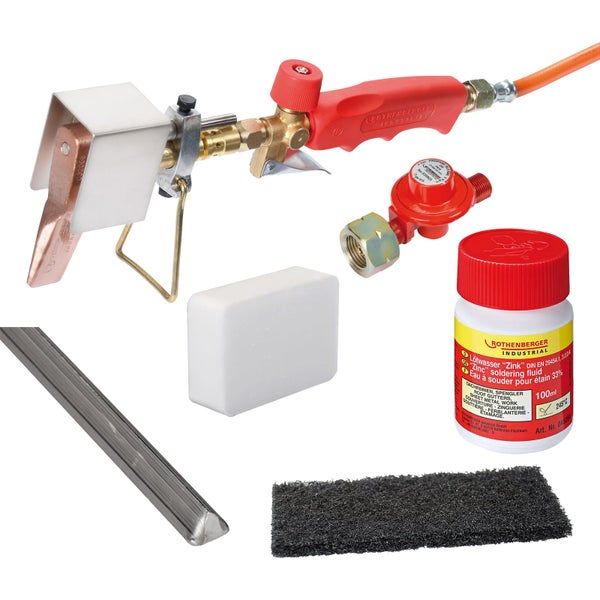 ROTHENBERGER Industrial Dachrinnen-Lötset inkl. Propan-Konstantregler Rolot Lötwasser Salmiakstein & Rovlies - 1500004466