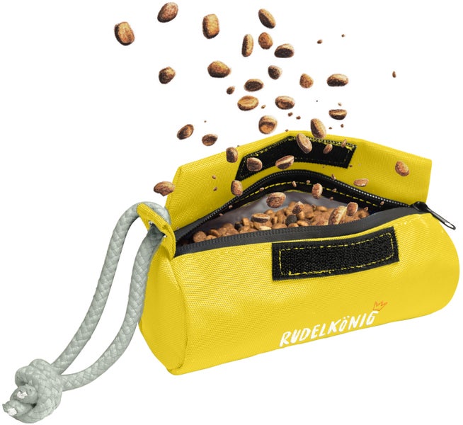 Rudelkönig Futterdummy in Gelb Apportierdummy Futterbeutel Hunde robust langlebig Leckerlis Training