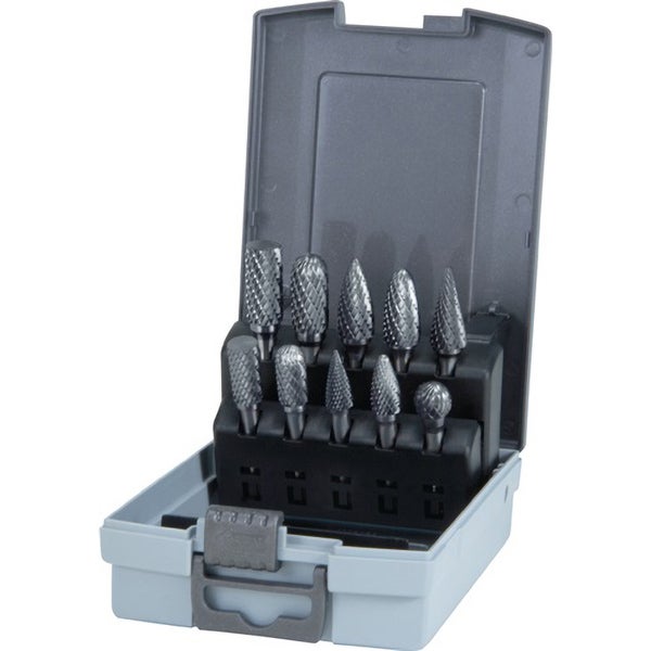 RUKO Hartmetall-Frässtifte-Satz Kreuzverzahnung HM 10tlg. Ø 10 / 12 mm in Kunststoffkassette - 116003RO