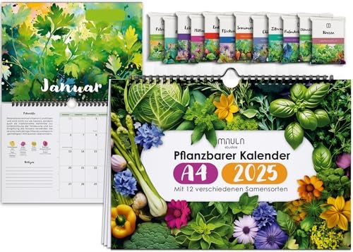 Saatgut Kalender 2025 - Einpflanzbarer Kalender Wandkalender 2025 A4 - Monatskalender 2025 mit 12 Sorten EU Samen - Kalender zum Einpflanzen - Gemüse, Kräuter, Obst & Blumen WC014_25