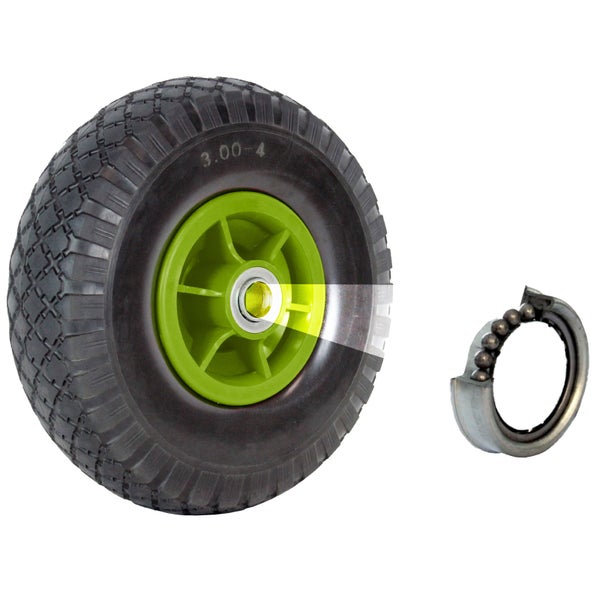 TRUTZHOLM Sackkarrenrad aus 4-lagigem Gewebe (4PR) 260x85 mm 3.00-4 mit grüner Kunststofffelge und versetzter 60 mm Nabe