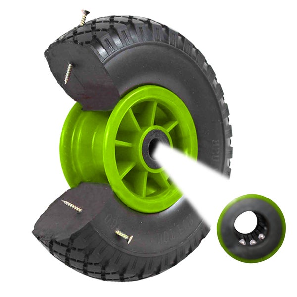 Sackkarrenrad PU-Rad 260x85 mm 3.00-4 75 mm zentrierte Nabe Ø 20 mm grün Vollgummi Bollerwagen