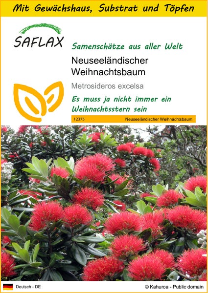 SAFLAX Anzucht Set - Neuseeländischer Weihnachtsbaum - Metrosideros excelsa - 300 Samen - Mit Mini-Gewächshaus, Anzuchtsubstrat und 2 Töpfen
