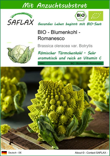 SAFLAX - BIO - Blumenkohl - Romanesco - Brassica oleracea var. Botrytis - 50 Samen - Mit keimfreiem Anzuchtsubstrat