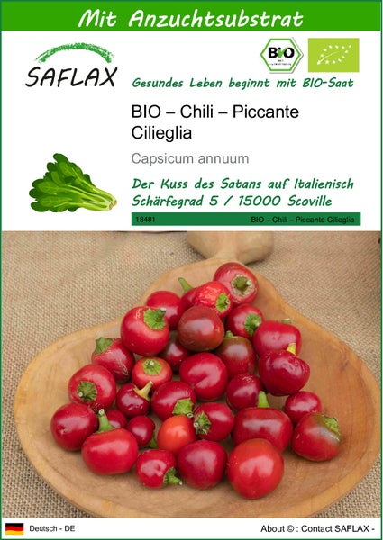 SAFLAX - BIO – Chili – Piccante Cilieglia - Capsicum annuum - 10 Samen - Mit keimfreiem Anzuchtsubstrat