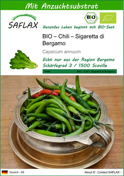 SAFLAX - BIO – Chili – Sigaretta di Bergamo - Capsicum annuum - 10 Samen - Mit keimfreiem Anzuchtsubstrat