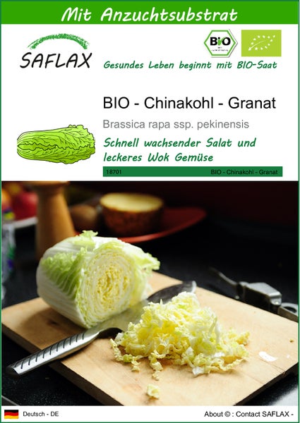 SAFLAX - BIO - Chinakohl - Granat - Brassica rapa ssp. pekinensis - 40 Samen - Mit keimfreiem Anzuchtsubstrat