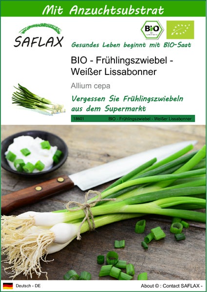 SAFLAX - BIO - Frühlingszwiebel - Weißer Lissabonner - Allium cepa - 150 Samen - Mit keimfreiem Anzuchtsubstrat
