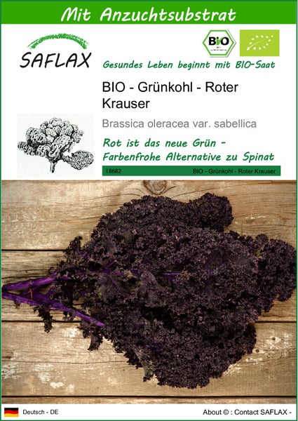 SAFLAX - BIO - Grünkohl - Roter Krauser - Brassica oleracea var. sabellica - 50 Samen - Mit keimfreiem Anzuchtsubstrat