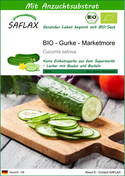 SAFLAX - BIO - Gurke - Marketmore - Cucumis sativus - 20 Samen - Mit keimfreiem Anzuchtsubstrat