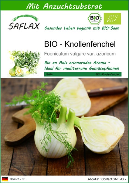 SAFLAX - BIO - Knollenfenchel - Foeniculum vulgare var. azoricum - 100 Samen - Mit keimfreiem Anzuchtsubstrat