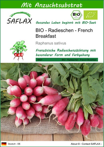SAFLAX - BIO - Radieschen - French Breakfast - Raphanus sativus - 150 Samen - Mit keimfreiem Anzuchtsubstrat