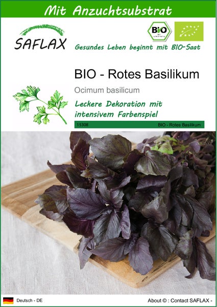 SAFLAX - BIO - Rotes Basilikum - Ocimum basilicum - 400 Samen - Mit keimfreiem Anzuchtsubstrat