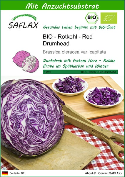 SAFLAX - BIO - Rotkohl - Red Drumhead - Brassica oleracea var. capitata - 250 Samen - Mit keimfreiem Anzuchtsubstrat