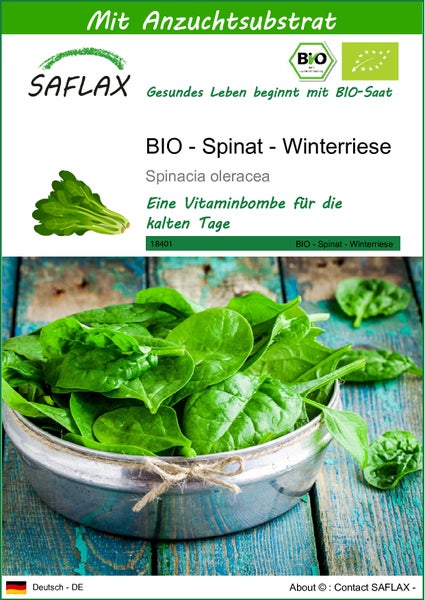 SAFLAX - BIO - Spinat - Winterriese - Spinacia oleracea - 250 Samen - Mit keimfreiem Anzuchtsubstrat