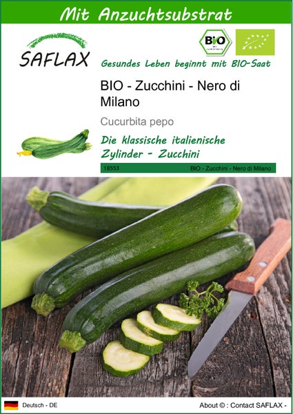 SAFLAX - BIO - Zucchini - Nero di Milano - Cucurbita pepo - 6 Samen - Mit keimfreiem Anzuchtsubstrat