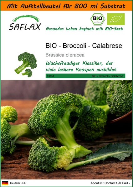 SAFLAX Garden in the bag - BIO - Broccoli - Calabrese - Brassica oleracea - 100 Samen - Mit Anzuchtsubstrat im praktischen, selbst aufstellenden Beutel