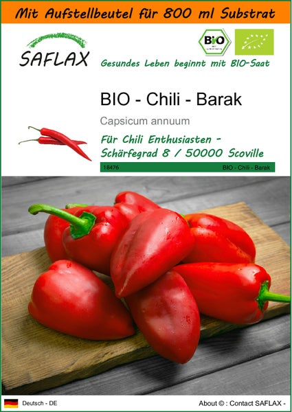 SAFLAX Garden in the bag - BIO - Chili - Barak - Capsicum annuum - 15 Samen - Mit Anzuchtsubstrat im praktischen, selbst aufstellenden Beutel