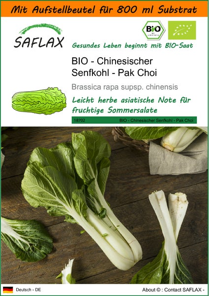 SAFLAX Garden in the bag - BIO - Chinesischer Senfkohl - Pak Choi - Brassica rapa supsp. chinensis - 300 Samen - Mit Anzuchtsubstrat im praktischen, selbst aufstellenden Beutel