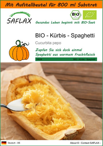SAFLAX Garden in the bag - BIO - Kürbis - Spaghetti - Cucurbita pepo - 5 Samen - Mit Anzuchtsubstrat im praktischen, selbst aufstellenden Beutel