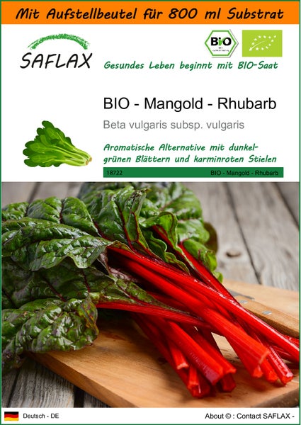 SAFLAX Garden in the bag - BIO - Mangold - Rhubarb - Beta vulgaris subsp. vulgaris - 50 Samen - Mit Anzuchtsubstrat im praktischen, selbst aufstellenden Beutel