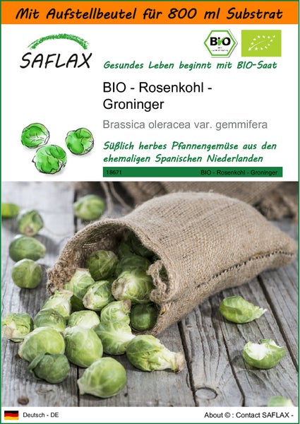 SAFLAX Garden in the bag - BIO - Rosenkohl - Groninger - Brassica oleracea var. gemmifera - 30 Samen - Mit Anzuchtsubstrat im praktischen, selbst aufstellenden Beutel