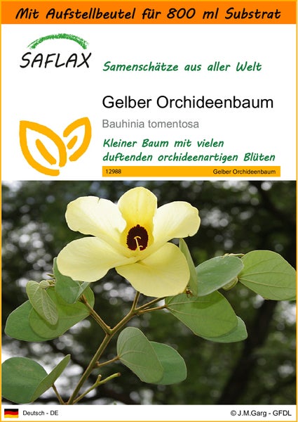 SAFLAX Garden in the bag - Gelber Orchideenbaum - Bauhinia tomentosa - 30 Samen - Mit Anzuchtsubstrat im praktischen, selbst aufstellenden Beutel