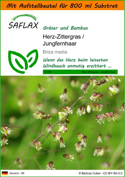 SAFLAX Garden in the bag - Herz-Zittergras / Jungfernhaar - Briza media - 75 Samen - Mit Anzuchtsubstrat im praktischen, selbst aufstellenden Beutel